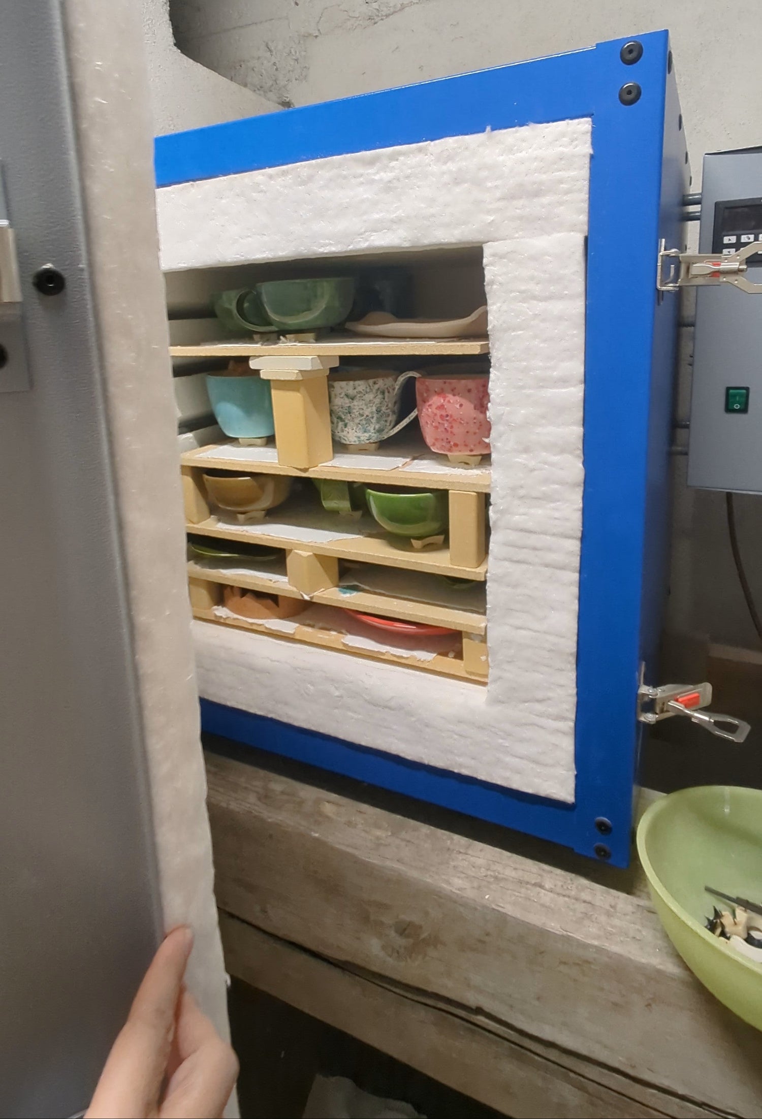 Possiamo cuocere sia biscotto che smalto, per manufatti fino a un massimo di 35×35×35 cm.